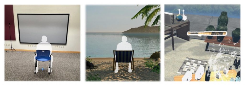 En este experimento[3] 2023, se lleva a cabo la comparación de tres maneras sobre el efecto relajante del estrés, los resultados, te los cuento:En este estudio participaron 40 personas, a las cuales, se les inducía estrés mediante una tarea cognitiva desafiante. Para calmar su nivel de estrés les aplicaban aleatoriamente 3 situaciones diferentes: Sentarse a meditar en silencio, la más convencional para los mortales, meditar en VR con imágenes relajadas, y usar una Smash Room VR para que te desahogues rompiendo todo. Como dato, se ha medido el nivel de estrés antes y después de cada caso, así como la recogida de datos del perfil de personalidad de dichos participantes para que los resultados fuesen concluyentes y realistas.